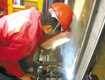 学员在进行气电立焊培训考证